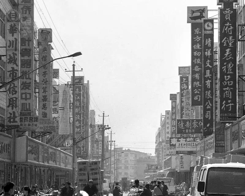 征集的部分照片。《文化用品专业街》,1998年于义乌市稠城镇春江路,金福根摄。