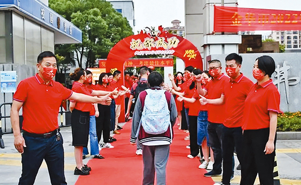 图为佛堂镇中在考前为考生加油鼓劲。(通讯员 黄晶 全媒体记者 张云飞 摄)