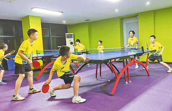 乒乓球小将们正挥动球拍,挥洒汗水