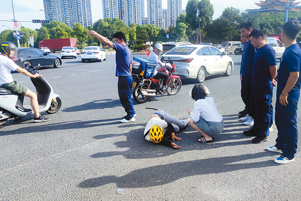 “快,停车,下去帮忙!”带队干部王敏敏立即组织队员下车救助。检查发现,外卖小哥肩膀和腰部受伤,面部和嘴角均有不同程度出血,一直在痛苦地呻吟。此时,电动汽车上的女司机也慌忙下了车。“我只是想趁着黄灯快点开过去,没想到……”这名女子声音发颤,边哭边给家人打电话。