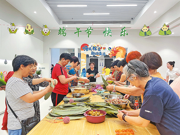 在凤凰社区,社区工作人员早早就准备好了包粽子活动所需的食材,有序组织居民签到。居民们热情高涨,迫不及待想动手参与进来。“我这需要酱油,谢谢”“盐是不是得再加点”“可以递下剪刀给我吗”……遇到小问题的居民向周边邻居寻求帮助,左右两侧的伙伴同时给予帮助,在一旁耐心指导,社区居民互帮互助,共同享受这段美好时光,脸上满是灿烂笑容。随后,“凤凰young”邻里节市集热闹开市,左邻右里前来“赶集”,给社区注入了前所未有的活力。