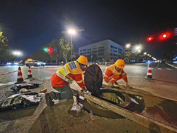 11月28日晚上10时许,市排水公司工作人员在工人北路与大通路交叉口开展道路问题井盖置换工作,消除该处井盖移位、异响问题。